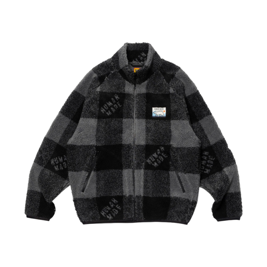휴먼 메이드 체크 보아 플리스 자켓 블랙