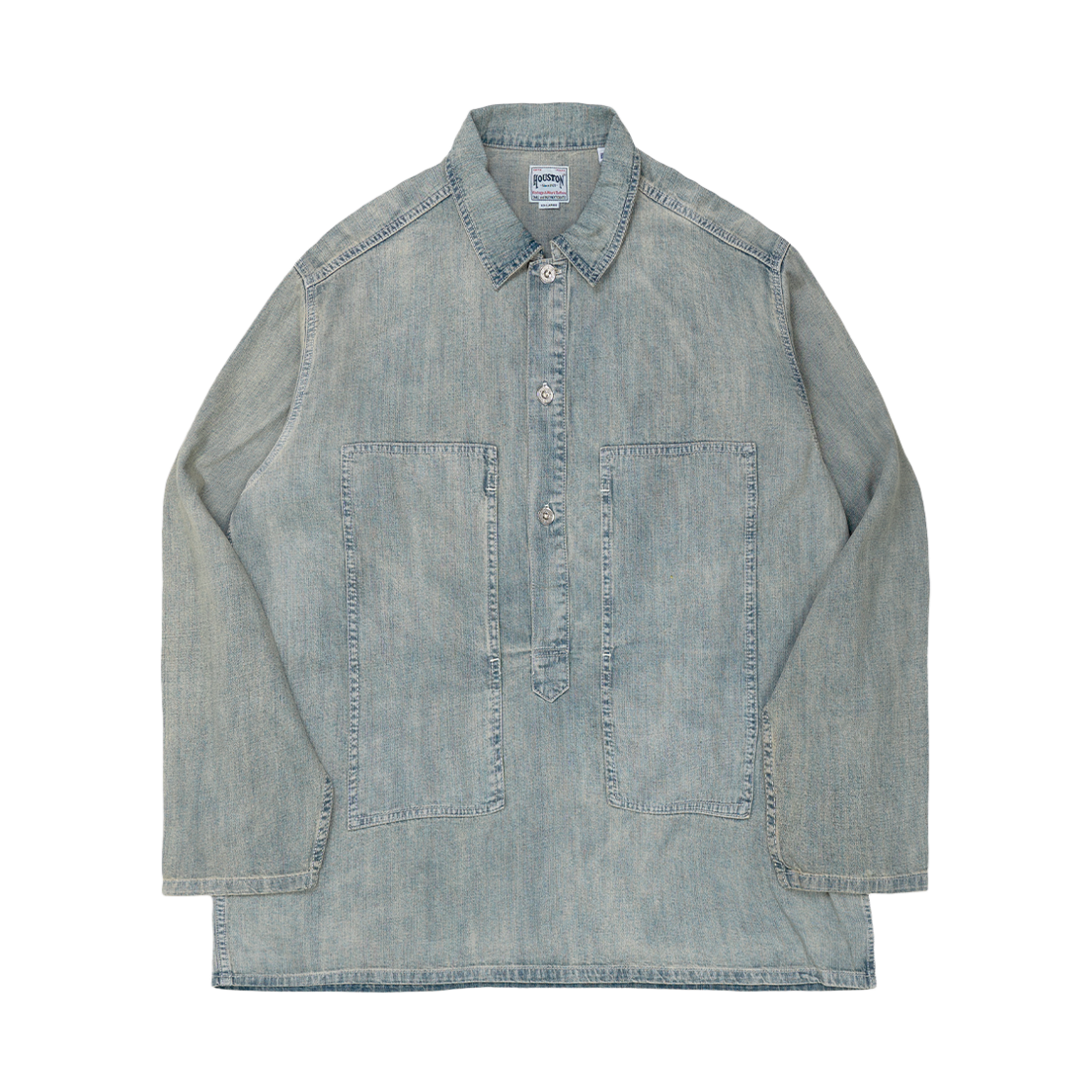 휴스턴 재팬 USA 코튼 데님 아미 풀오버 셔츠 인디고 빈티지 워시 40696