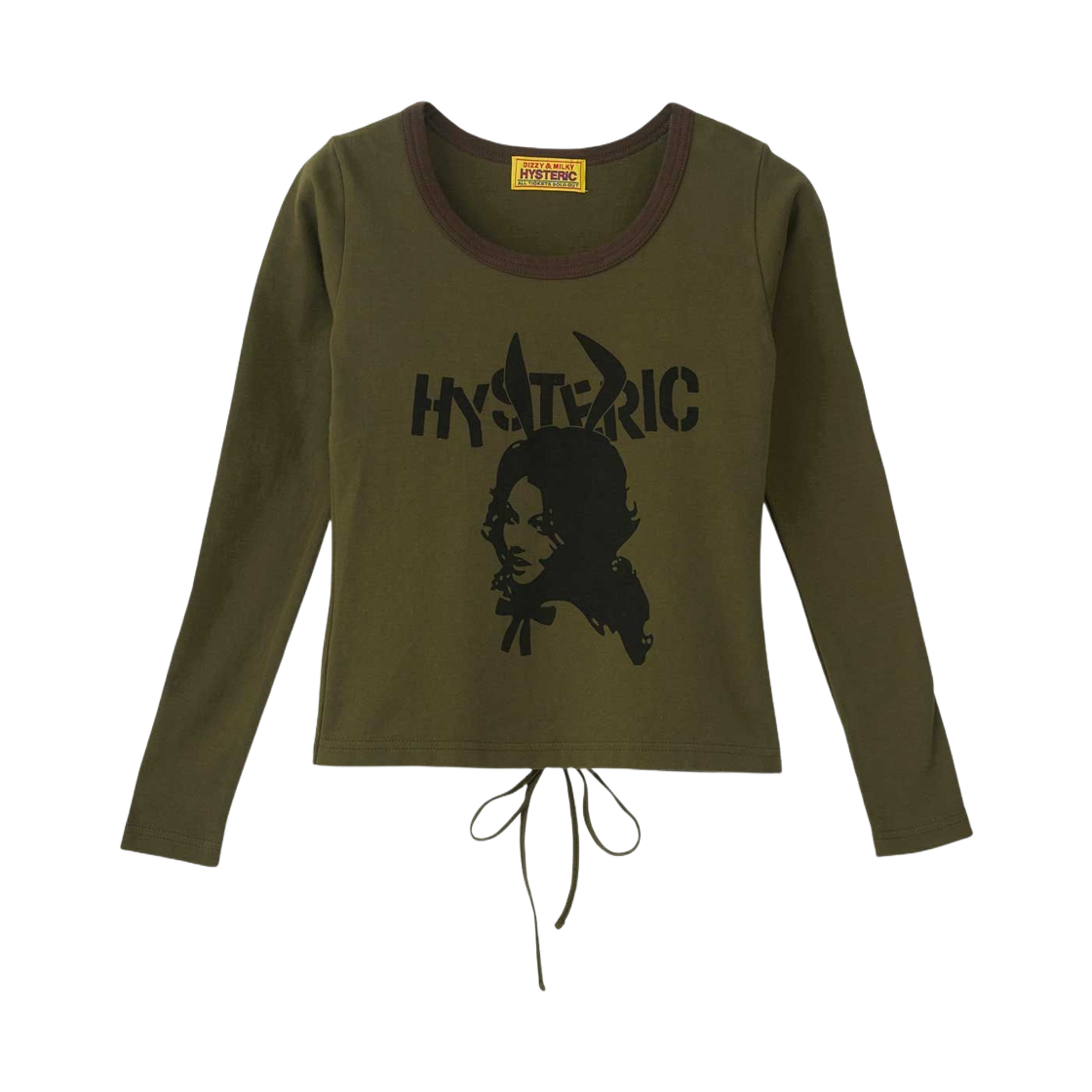 (W) 히스테릭 글래머 버니걸 레이스업 치비 티셔츠 카키