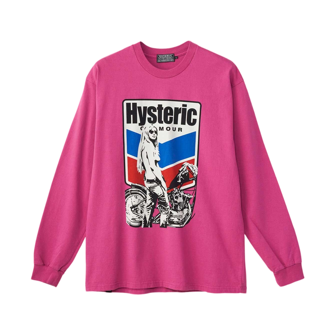 히스테릭 글래머 모터사이클 걸 티셔츠 핑크