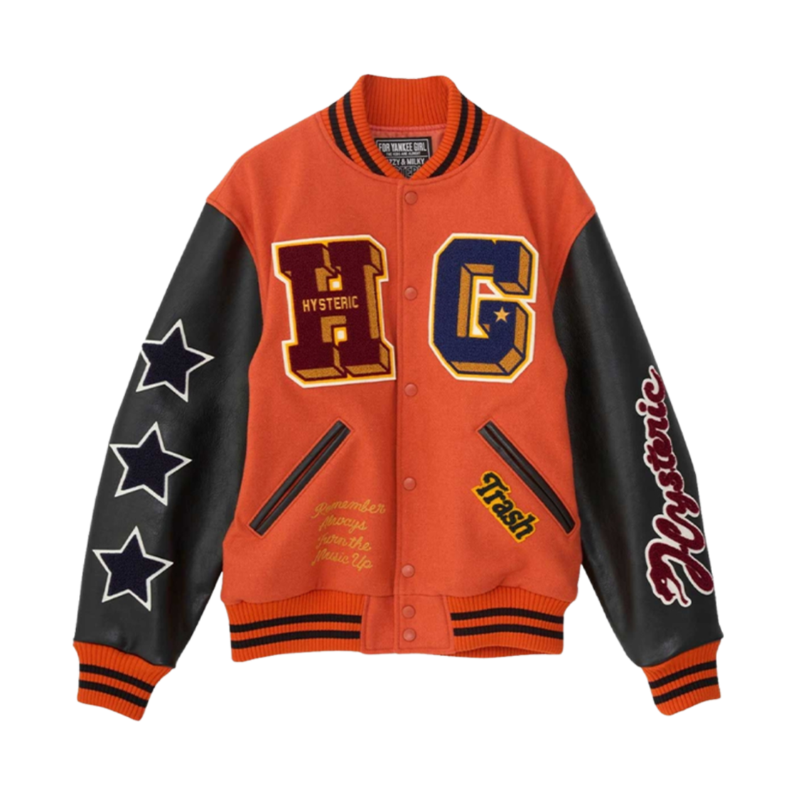 히스테릭 글래머 턴 더 뮤직 업 자수 스타디움 자켓 오렌지