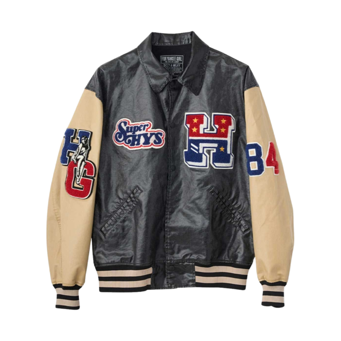 히스테릭 글래머 HG 바시티 패치 자켓 블랙