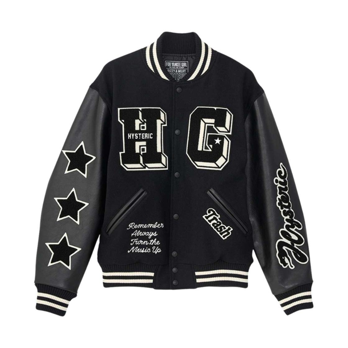 히스테릭 글래머 턴 더 뮤직 업 자수 스타디움 자켓 블랙