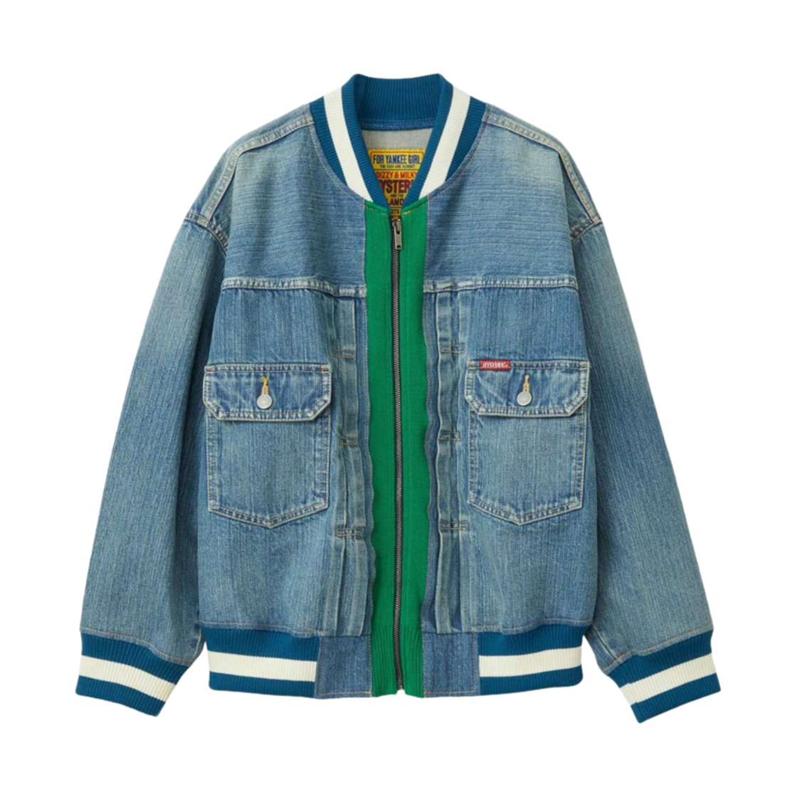 히스테릭 글래머 블러디 히스테릭 패치 스타디움 자켓 블루