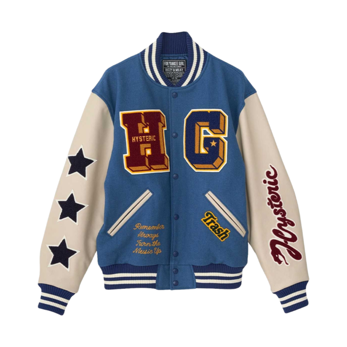 히스테릭 글래머 턴 더 뮤직 업 자수 스타디움 자켓 블루