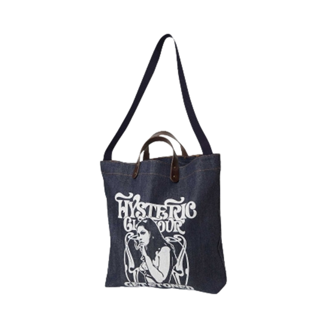 히스테릭 글래머 스모킹 걸 데님 토트백 라이트 인디고 블루