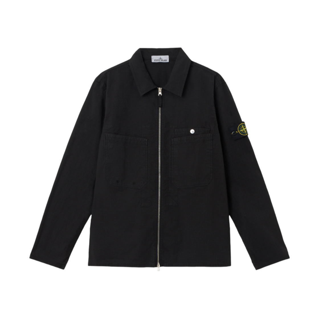 스톤 아일랜드 1200012 밀 스펙 스트레치 립스탑-TC 오버셔츠 체스트 포켓 앤 투웨이 집 블랙 - 25SS