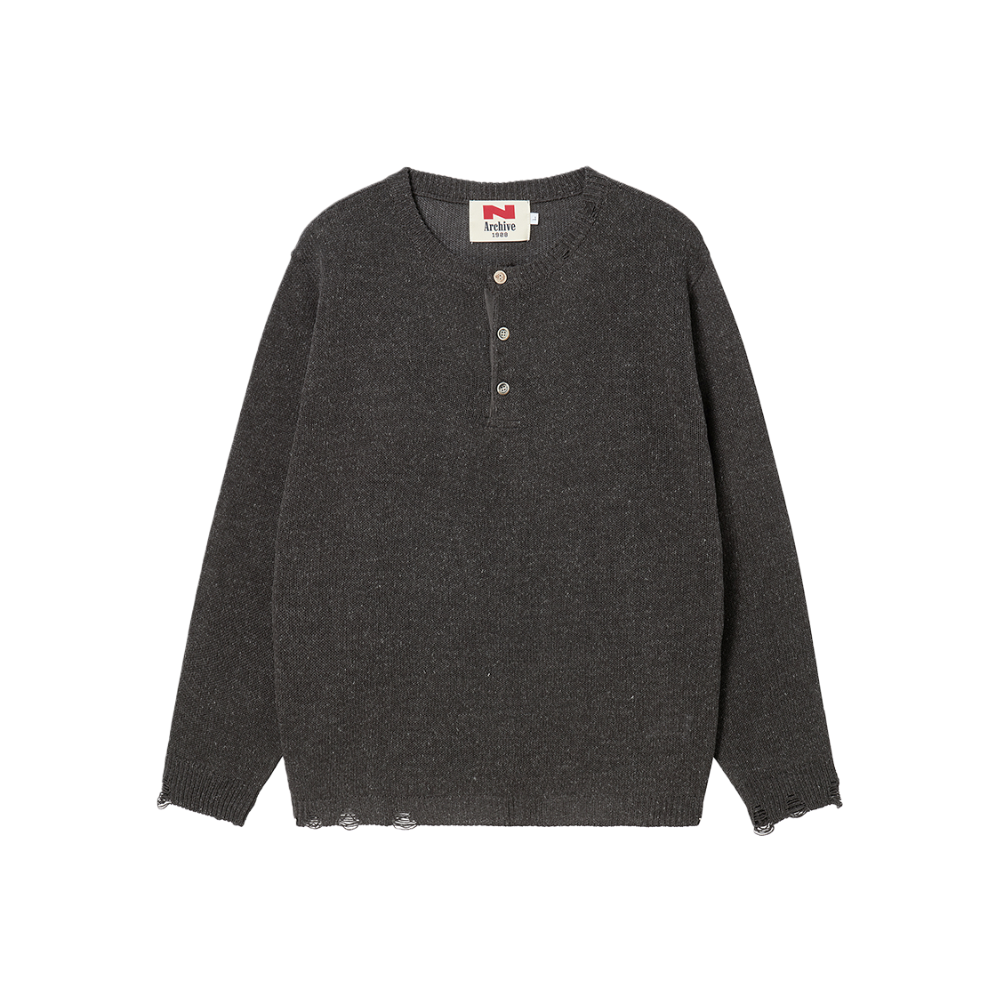엔 아카이브 린넨 블렌디드 빈티지 가먼트 헨리넥 니트 차콜 그레이