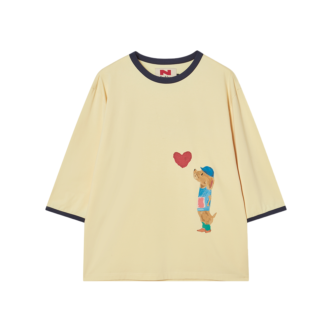 엔 아카이브 런조이 퍼포먼스 7부 티셔츠 옐로우