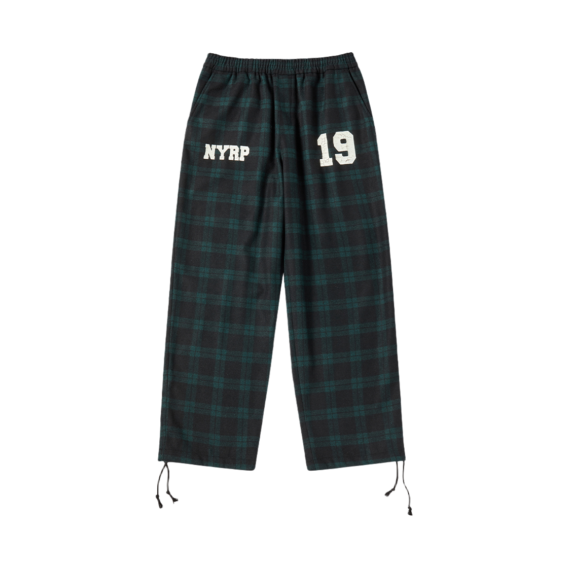 엔 아카이브 러프 프린트 플란넬 체크 드로잉 울 팬츠 블랙