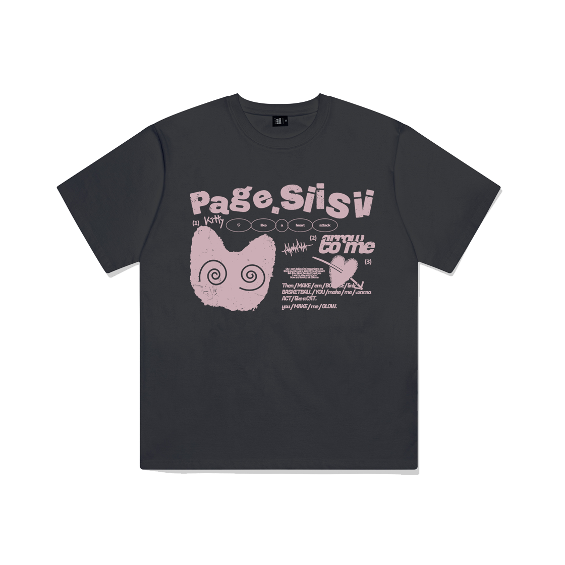 페이지시시 하트어택 캣 프린팅 반팔티 차콜