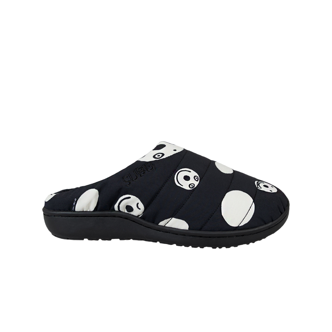 스부 x 10 꼬르소 꼬모 스마일 프린트 퀼티드 나일론 슬리퍼 블랙