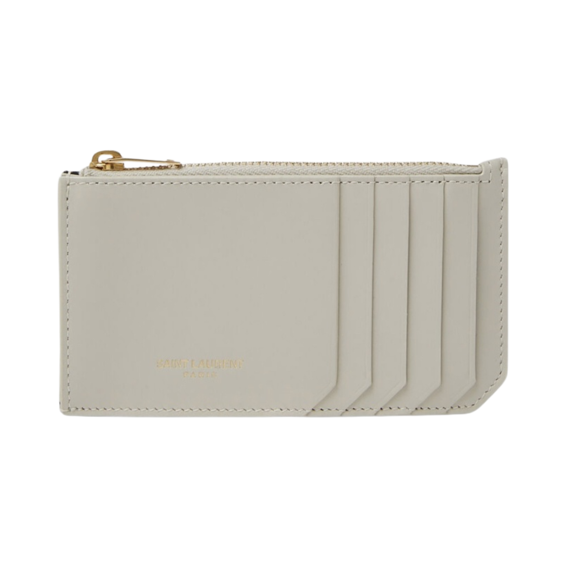 생로랑 파리 지퍼 카드 케이스 레더 블랑 빈티지