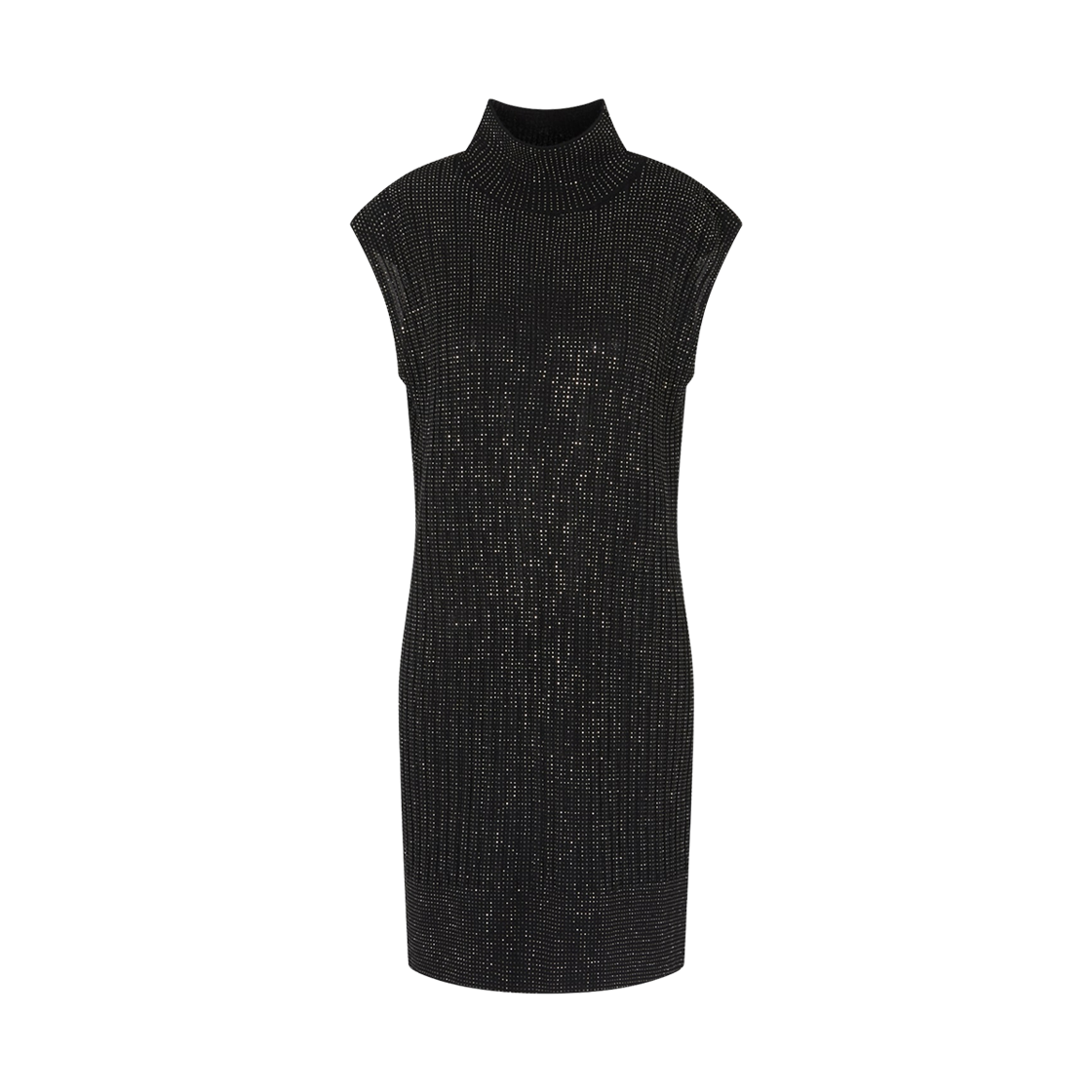 (W) 엠포리오 아르마니 올 오버 라인스톤 플레인 니트 버진 울 블렌드 슬리브리스 드레스 블랙