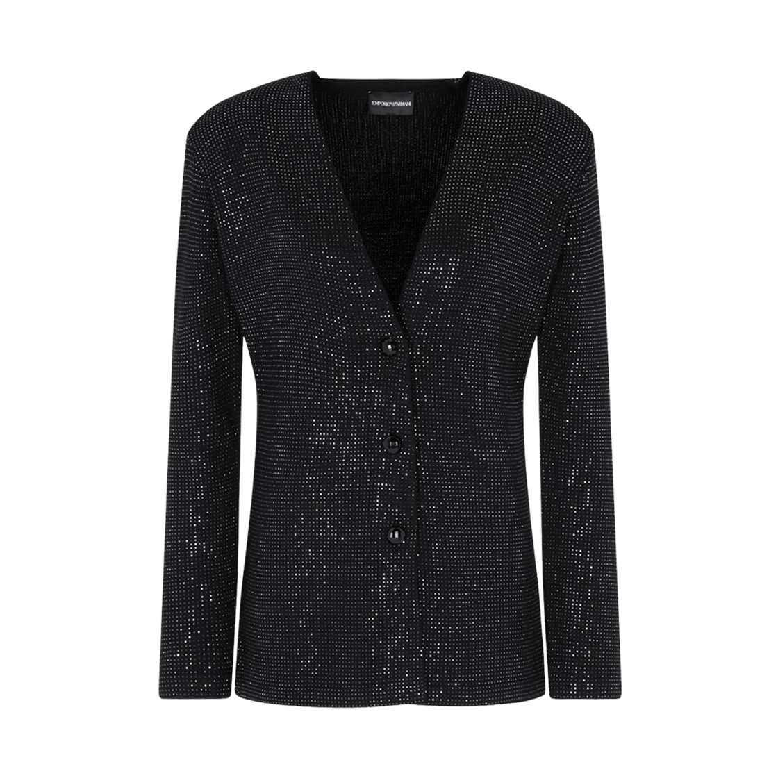 (W) 엠포리오 아르마니 올 오버 라인스톤 버진 울 블렌드 플레인 니트 가디건 블랙