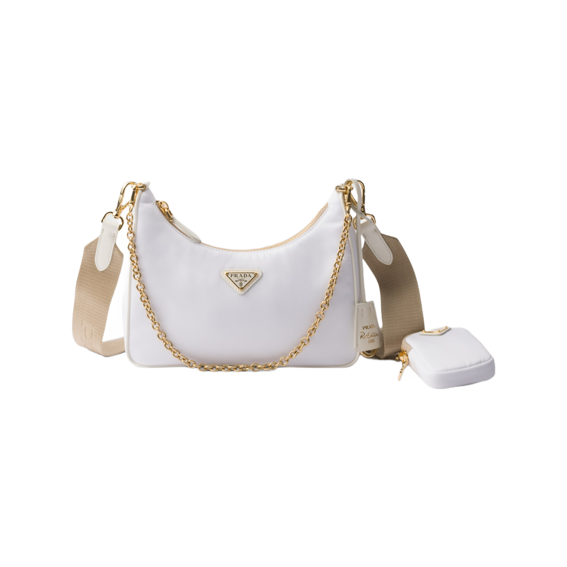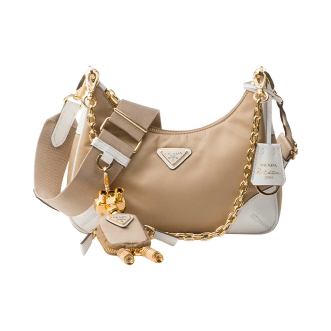 프라다 리-에디션 2005 리나일론 앤 사피아노 레더 백 카멜 화이트