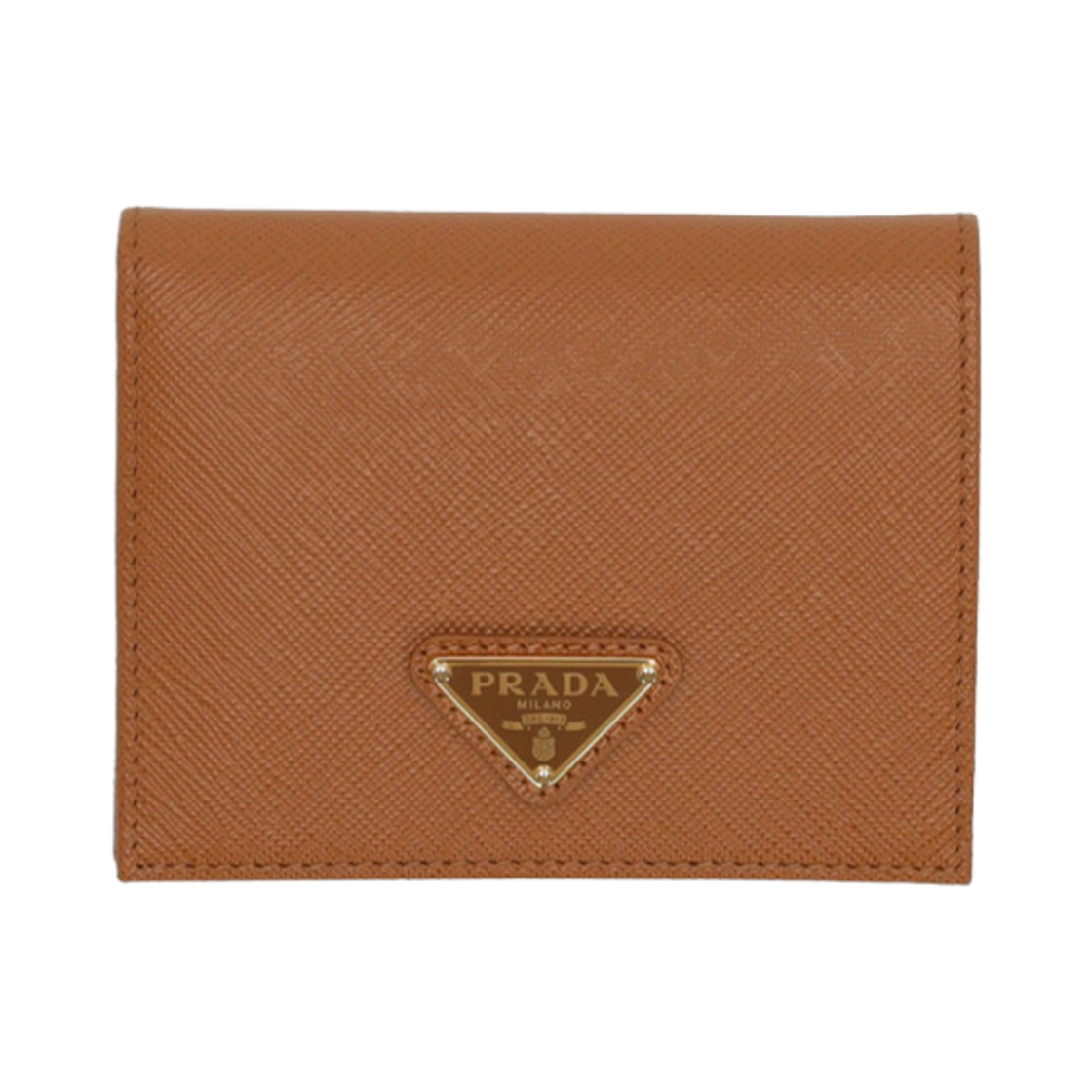 프라다 사피아노 레더 트라이앵글 로고 월렛 카라멜