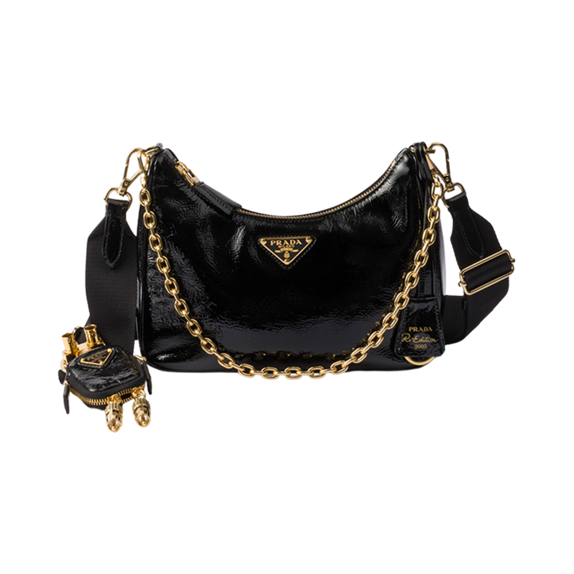 프라다 리에디션 2005 나플락 페이턴트 레더 백 참 블랙