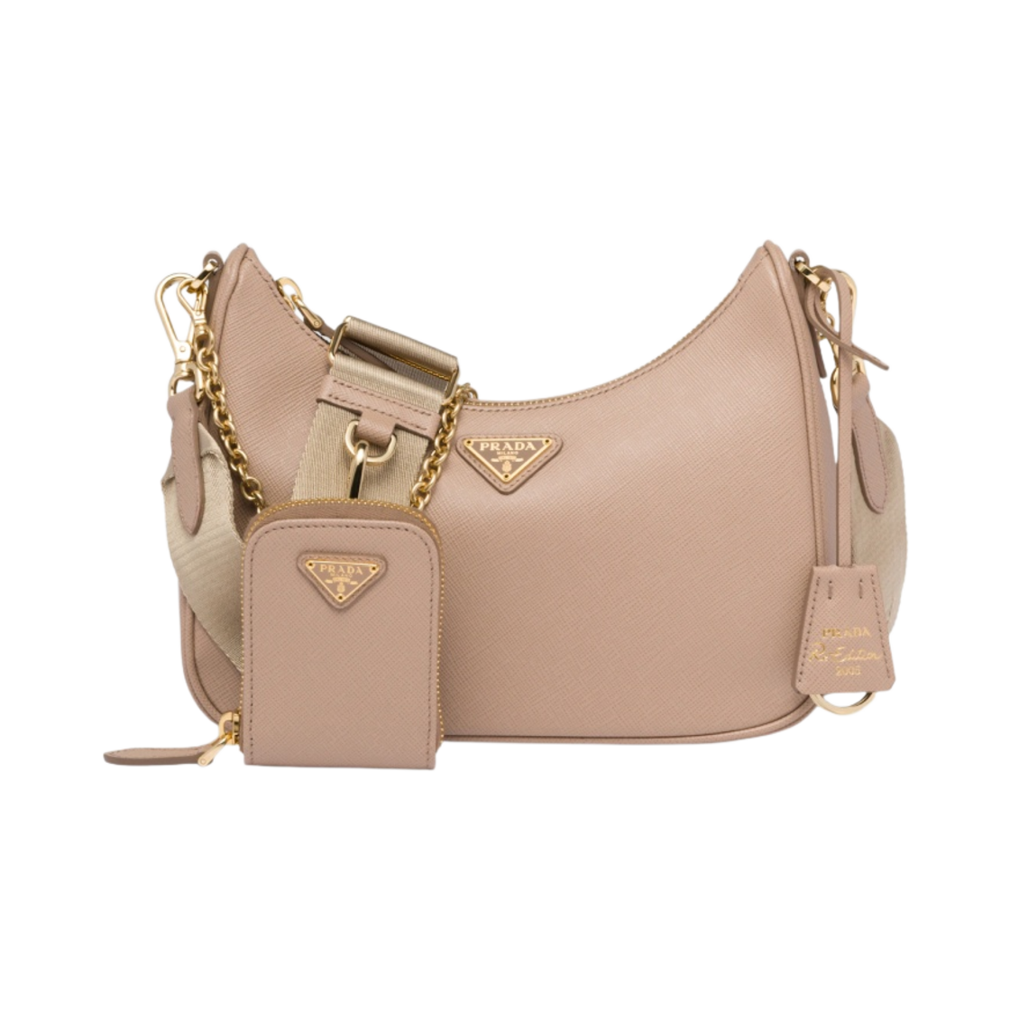 프라다 리에디션 2005 사피아노 레더 숄더백 카메오 베이지