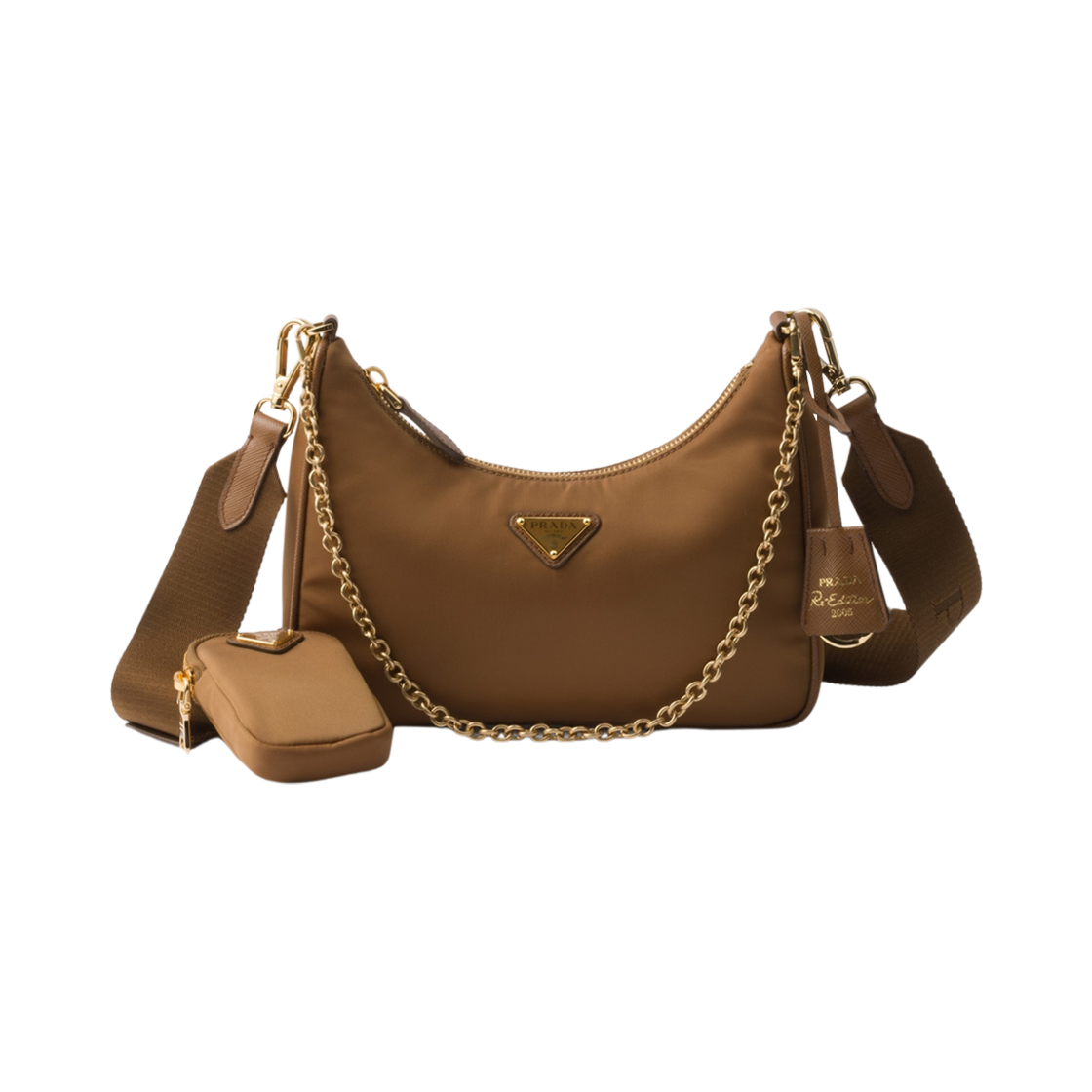 프라다 리-에디션 2005 리나일론 앤 사피아노 레더 백 카멜 카라멜