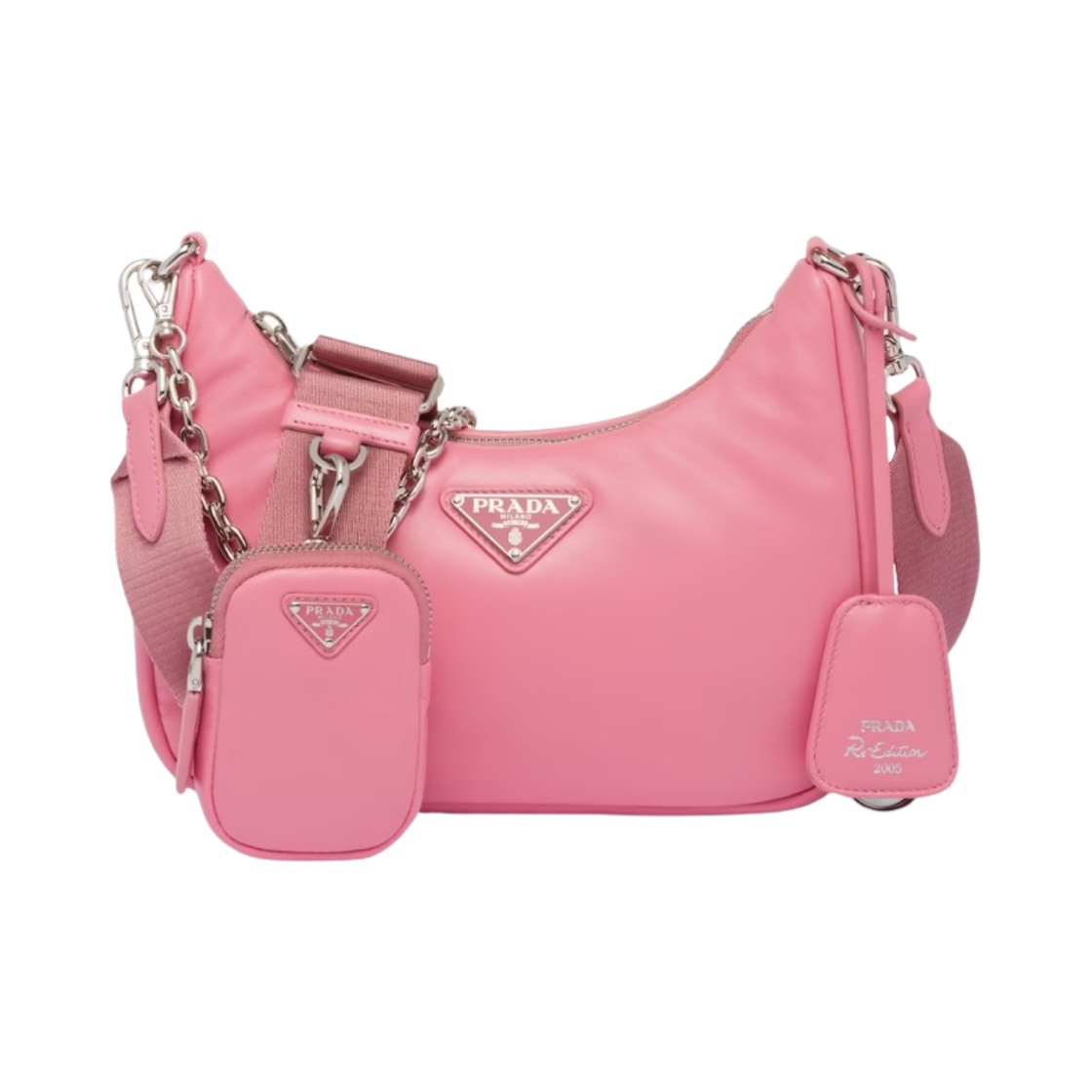프라다 1BH204 프라다 리에디션 2005 숄더백 패딩 나파 레더 제라늄 핑크