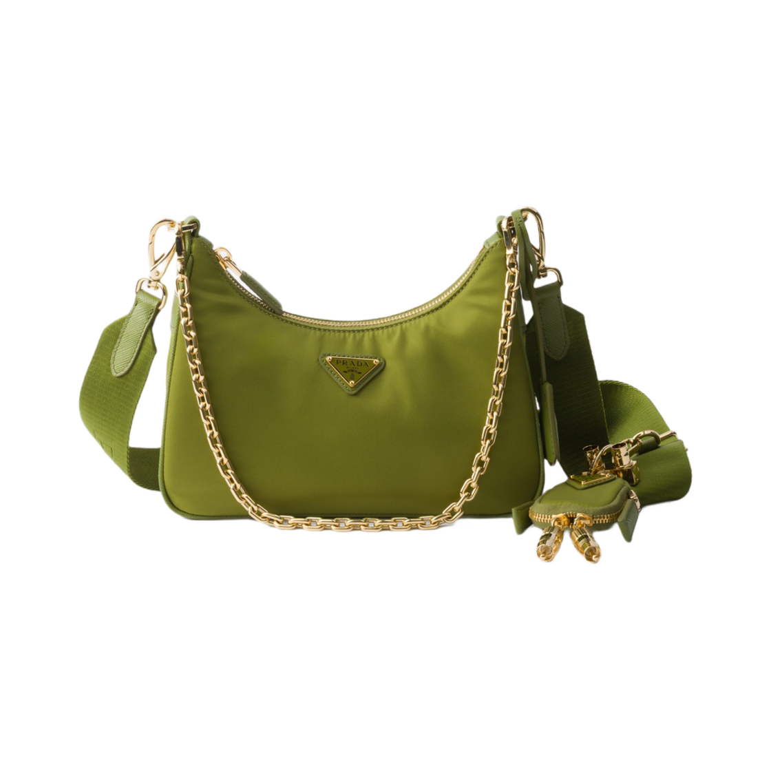 프라다 리에디션 2005 리나일론 앤 사피아노 레더 백 참 아이비 그린