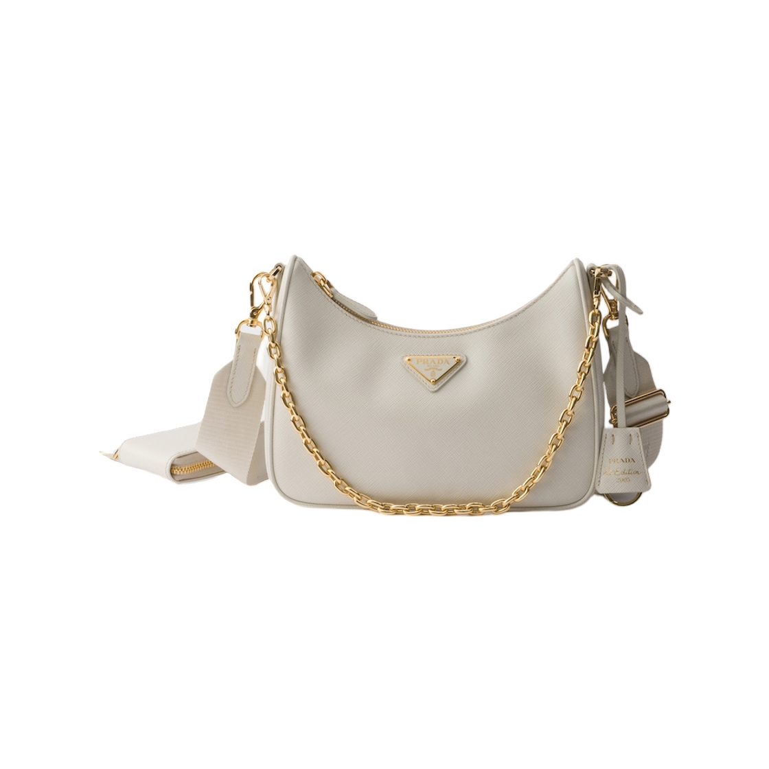 프라다 리에디션 2005 사피아노 레더 숄더백 화이트