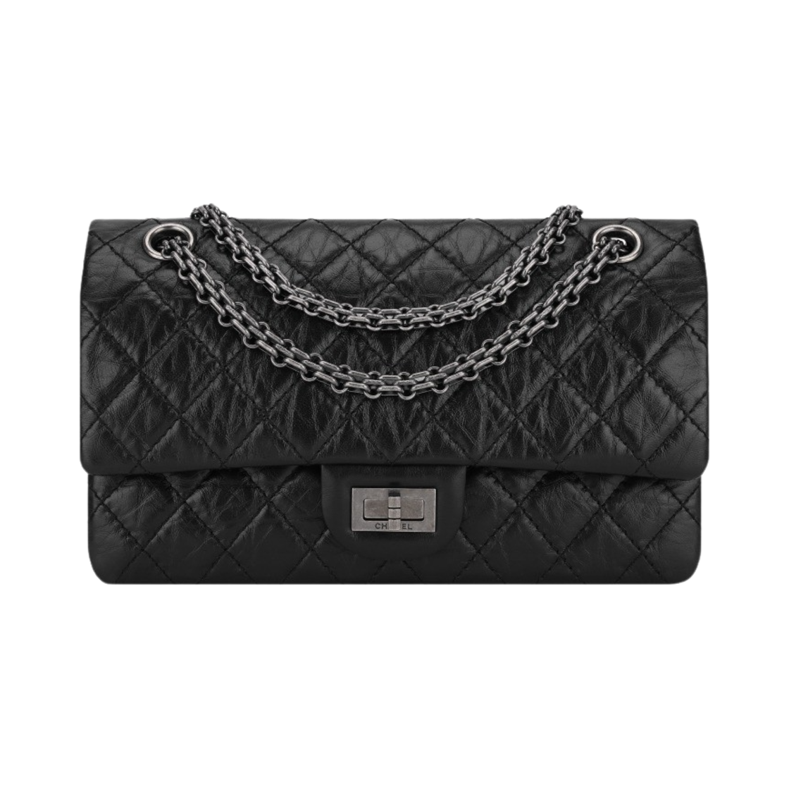 샤넬 2.55 미디움 플랩백 빈티지 카프스킨 & 루테늄 메탈 블랙