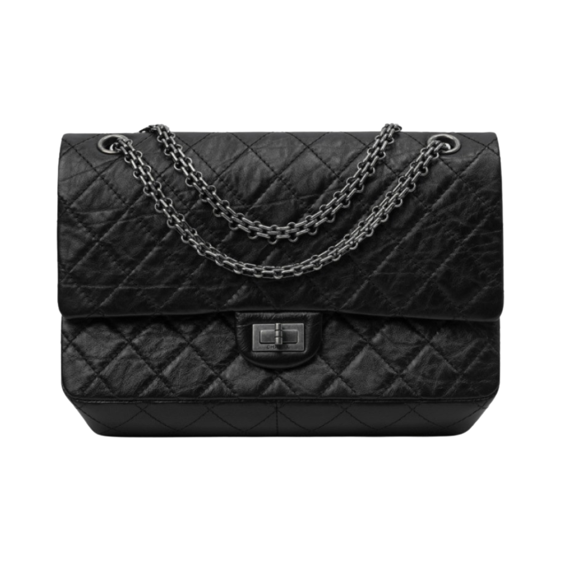 샤넬 2.55 라지 플랩백 빈티지 카프스킨 & 루테늄 메탈 블랙