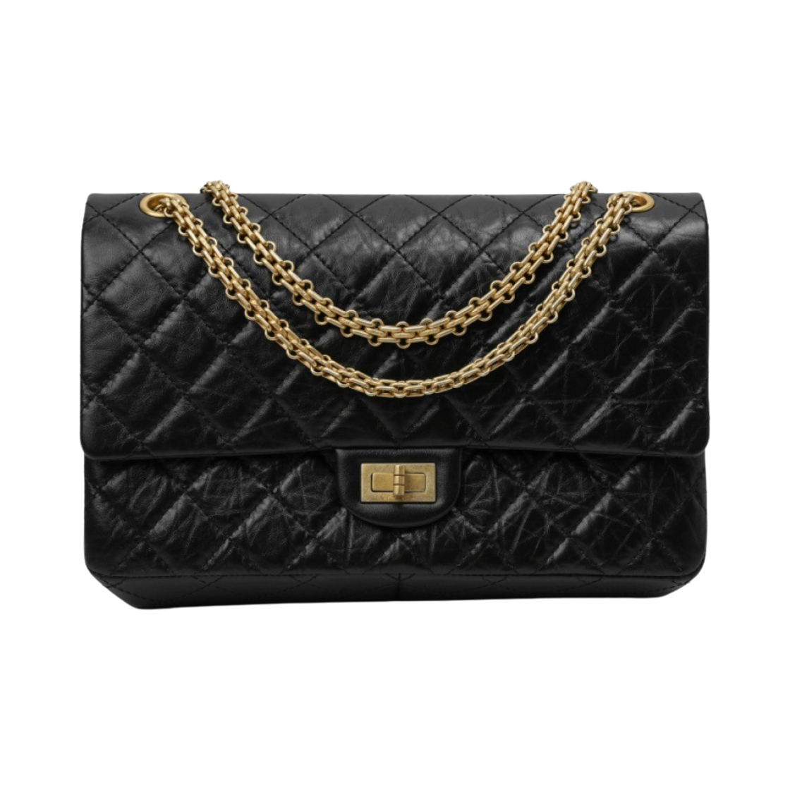 샤넬 2.55 라지 플랩백 빈티지 카프스킨 & 골드 메탈 블랙