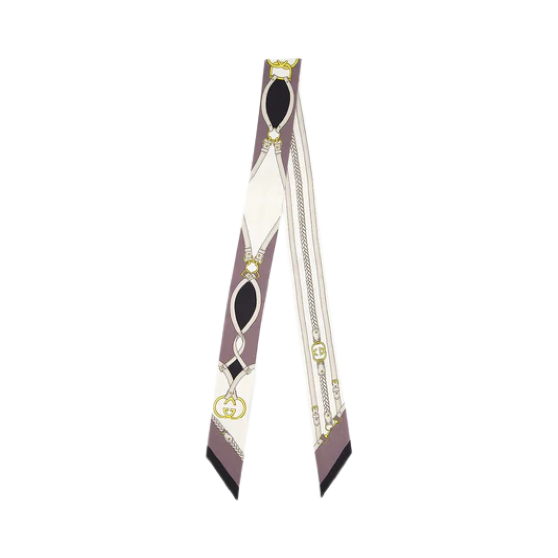 (W) 구찌 에퀘스트리안 프린트 실크 넥 보우 그레이 화이트