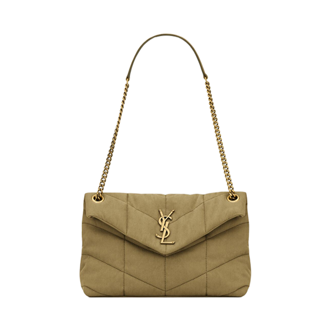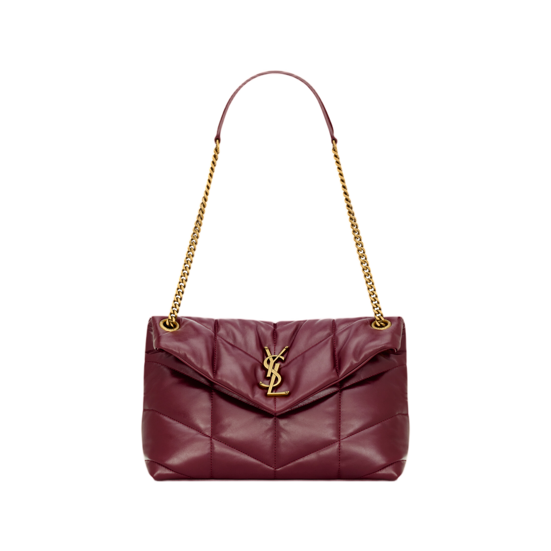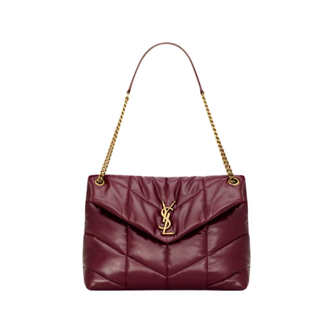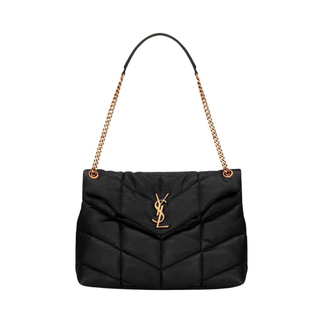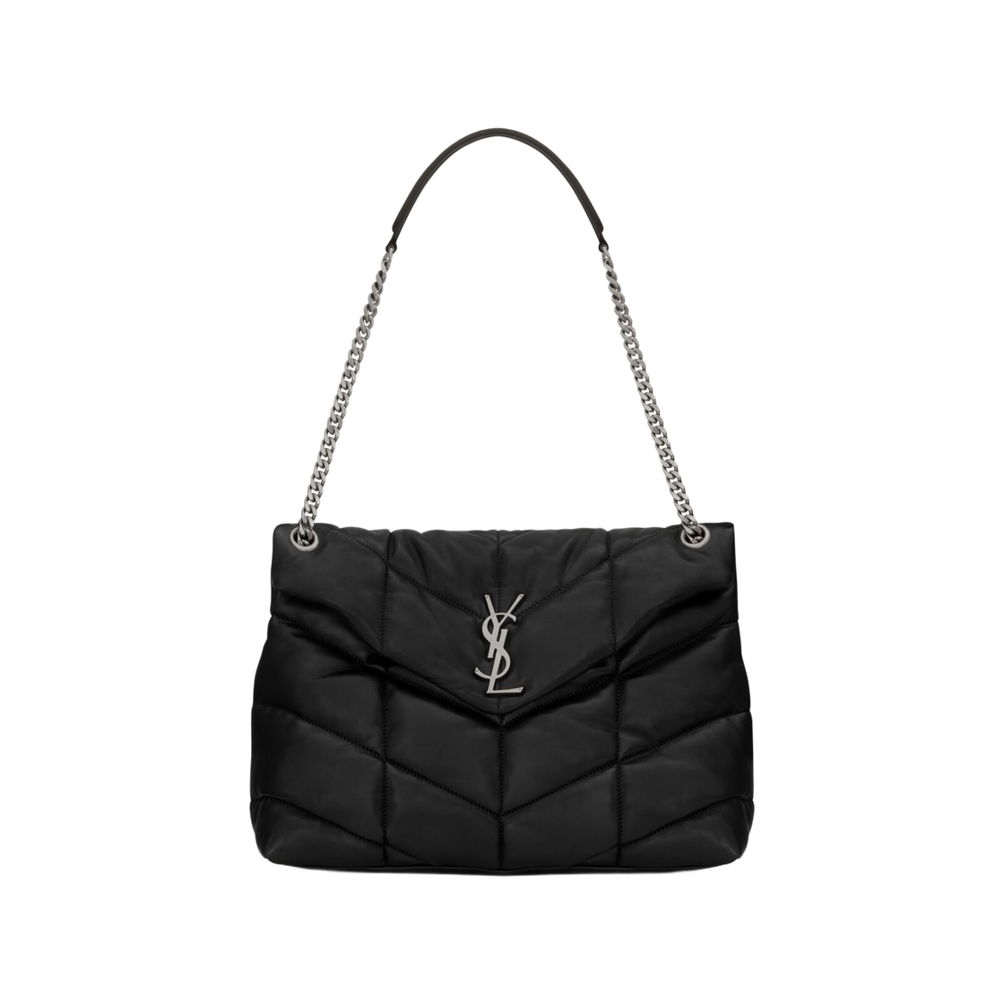 생로랑 퍼퍼 미디움 체인 백 퀼티드 램스킨 블랙