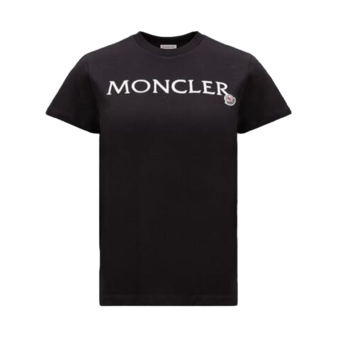 (W) 몽클레르 로고 자수 티셔츠 블랙 - 23SS