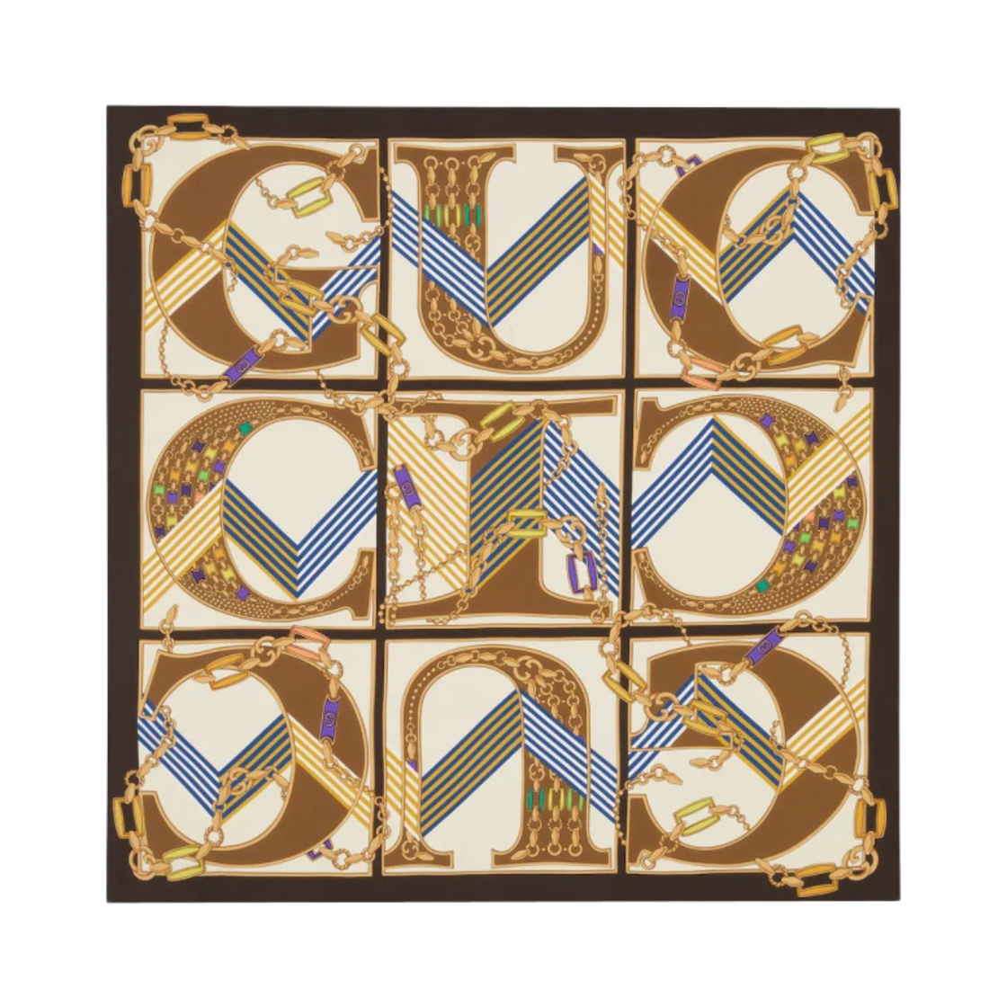 (W) 구찌 프린트 실크 스카프 아이보리 다크 브라운