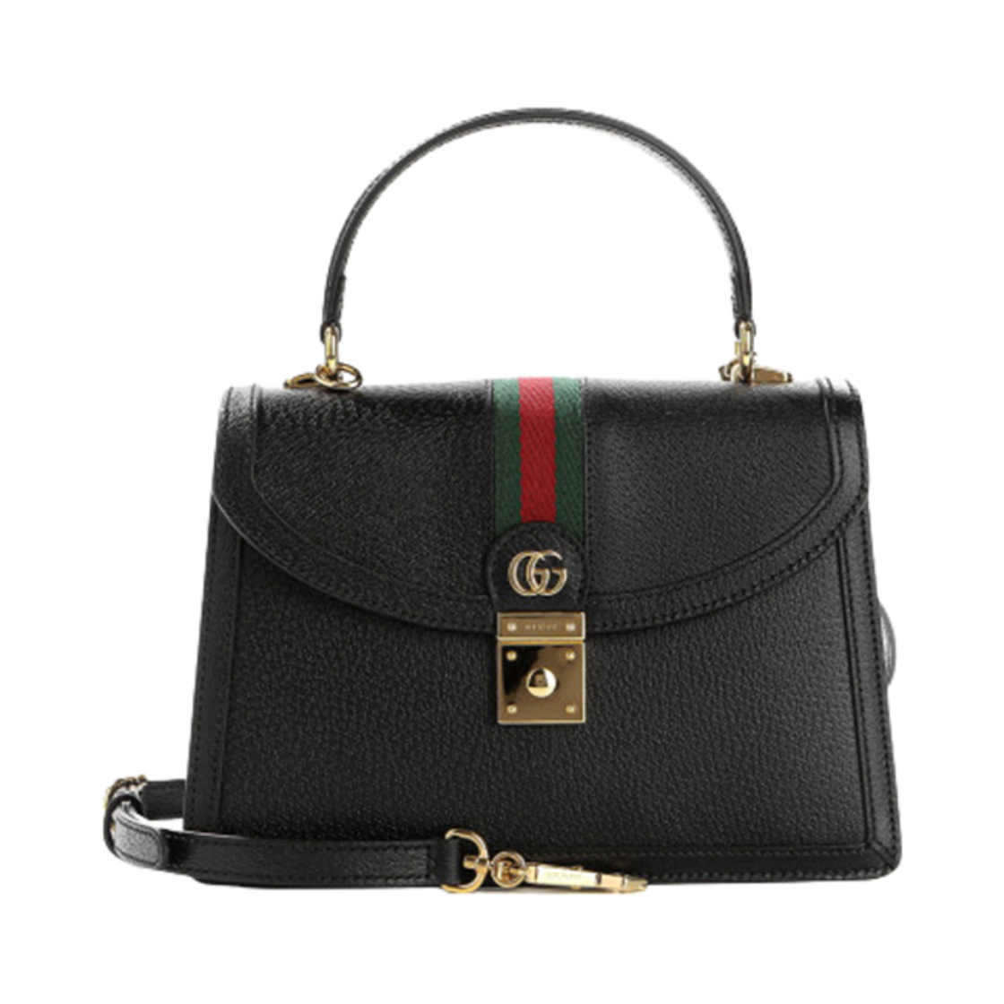 구찌 오피디아 웹 스트랩 탑 핸들백 블랙