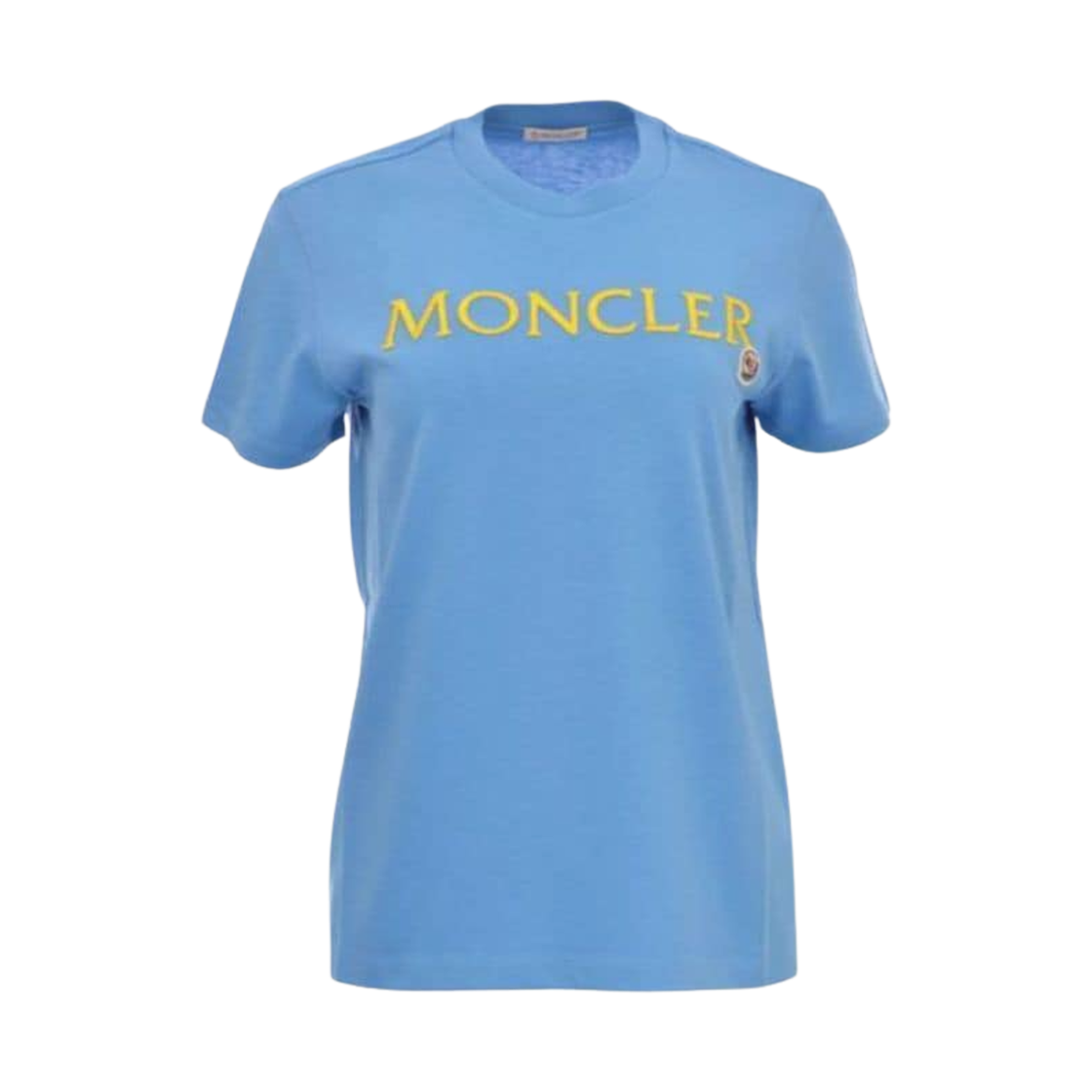 (W) 몽클레르 로고 자수 티셔츠 블루 - 23SS