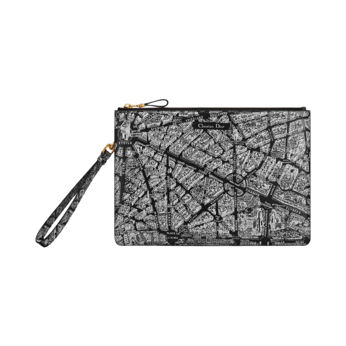 디올 맵 라지 데일리 파우치 블랙 화이트 플랜 드 파리 프린티드 카프스킨