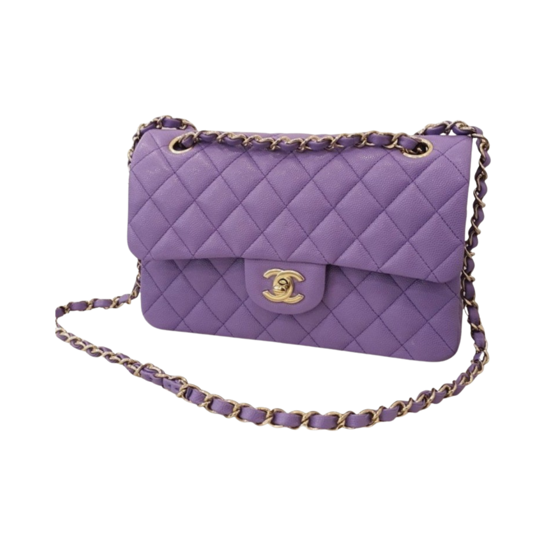 샤넬 클래식 스몰 플랩백 그레인드 샤이니 카프스킨 & 골드 메탈 퍼플