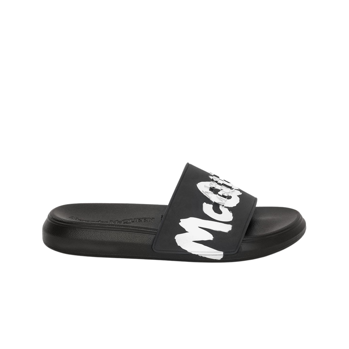 알렉산더 맥퀸 그래피티 러버 풀 슬라이드 블랙 화이트
