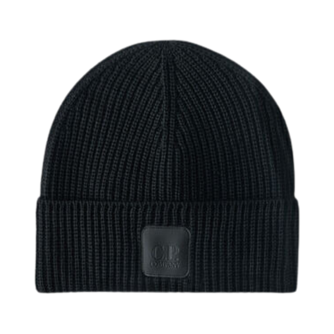 C.P. 컴퍼니 메트로폴리스 시리즈 엑스트라파인 메리노 울 로고 비니 블랙 - 24FW