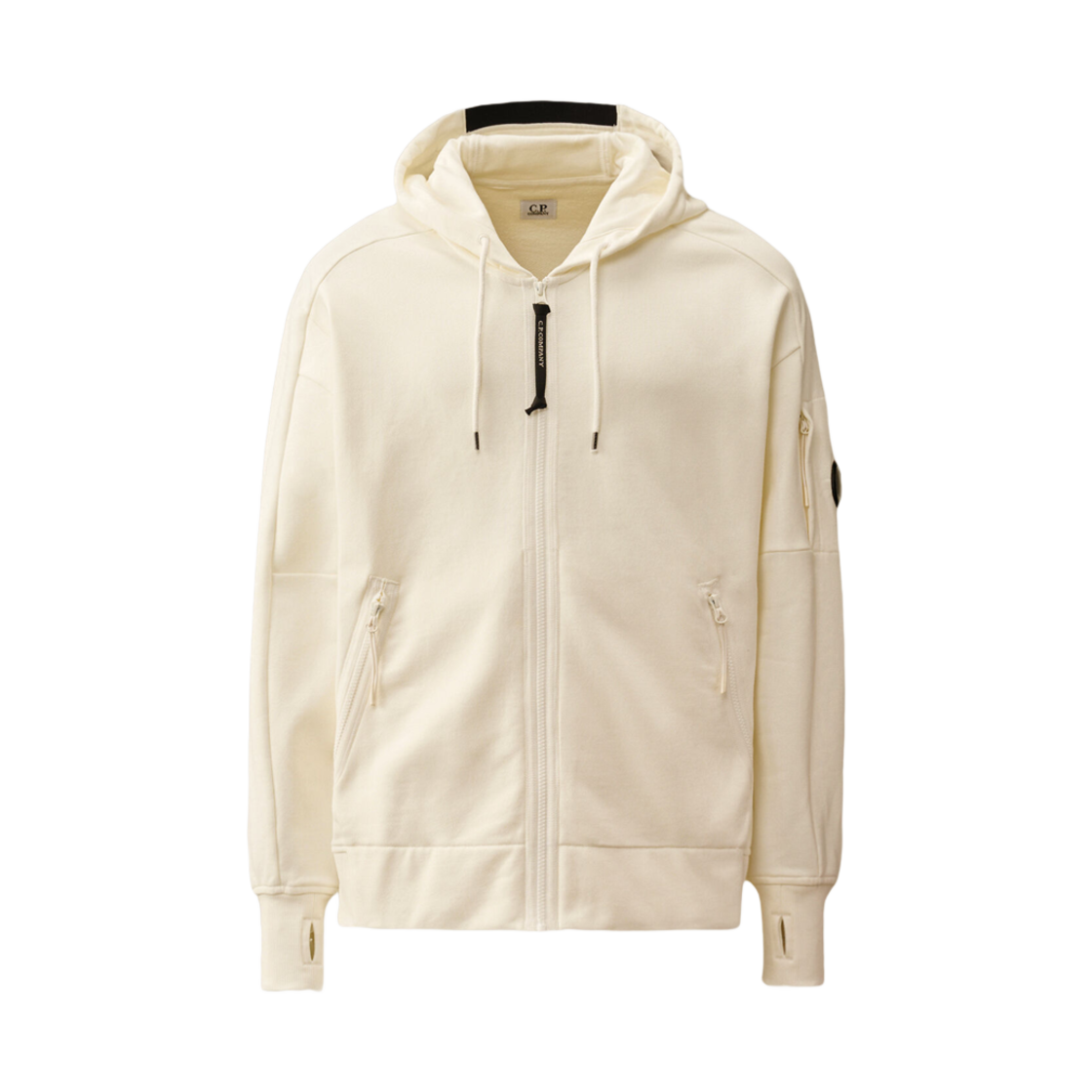 C.P. 컴퍼니 다이애그널 레이즈드 플리스 풀 집 후드 스웨트셔츠 거즈 화이트 - 25SS