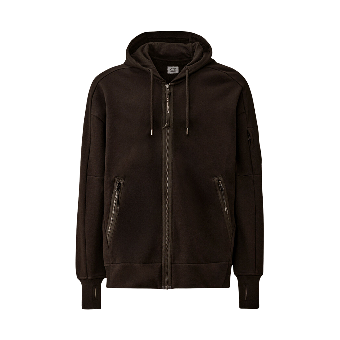 C.P. 컴퍼니 다이애그널 레이즈드 플리스 후드 풀 집 스웨트셔츠 블랙 - 25FW