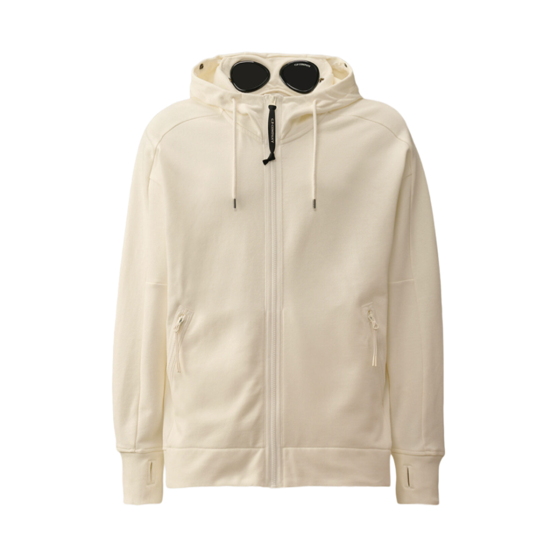 C.P. 컴퍼니 다이애그널 레이즈드 플리스 풀 집 후드 스웨트셔츠 거즈 화이트 - 25SS