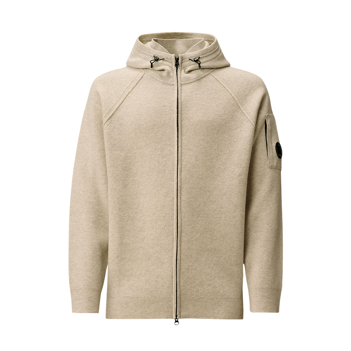 C.P. 컴퍼니 램스울 GRS 후드 풀 집 스웨터 오프 화이트 멜란지 - 25FW