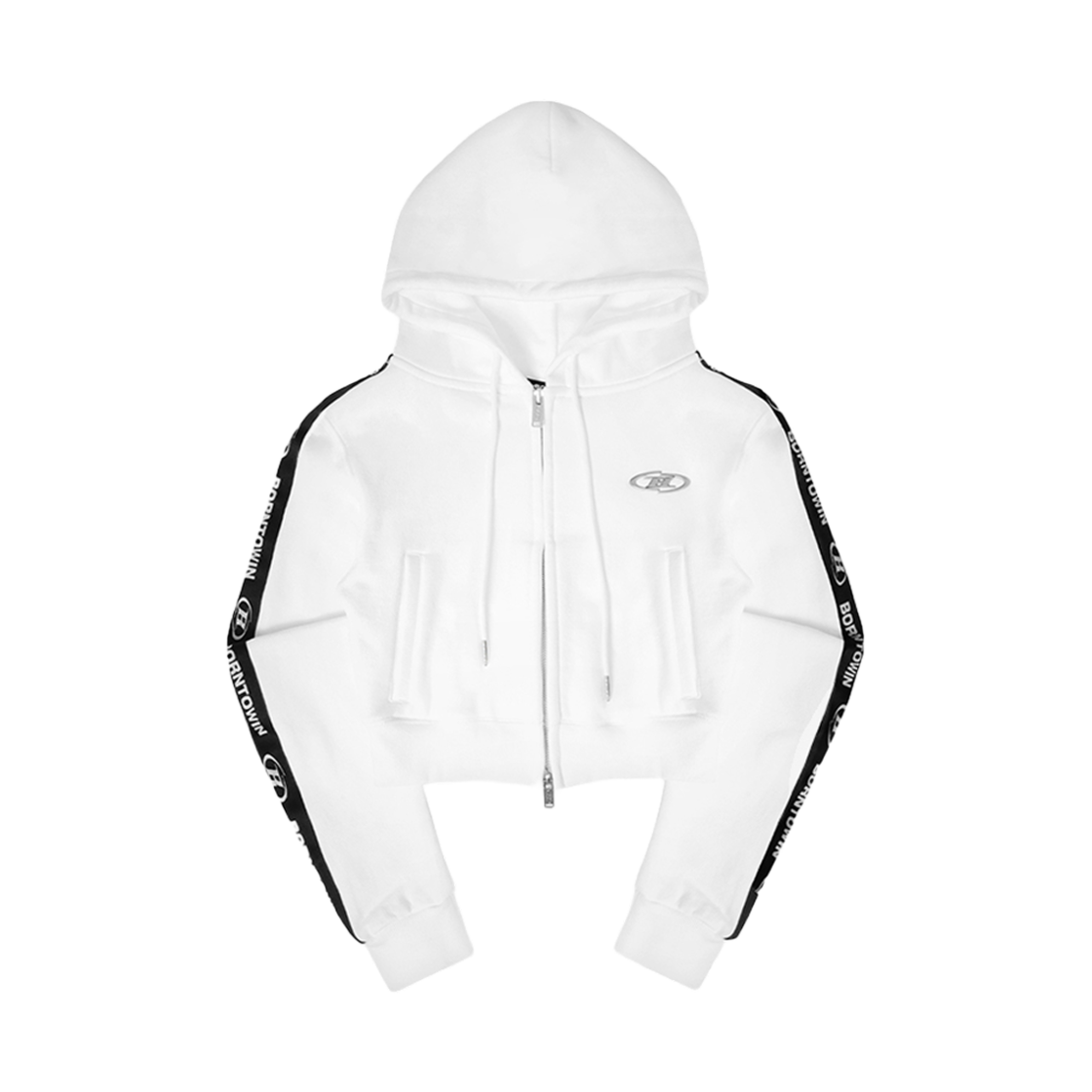 본투윈 크롬 B 블랙 라인 크롭 집업 후드 화이트