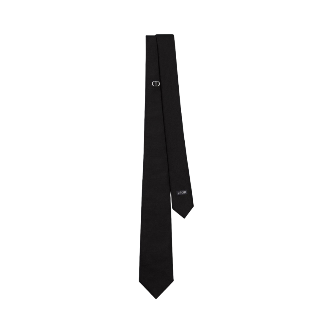 디올 스트라이프 디올 오블리크 실크 타이 블랙 화이트 그레이