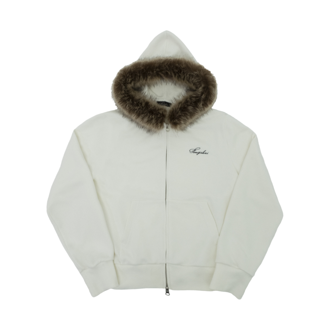 [KREAM 단독 / 프리오더] 펑쉐이 스몰 로고 퍼 후드 집업 자켓 화이트 크림