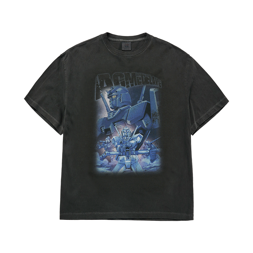 아크메드라비 모빌 슈트 건담 오퍼레이션 V 피그먼트 워싱 쇼트 슬리브 티셔츠 챠콜