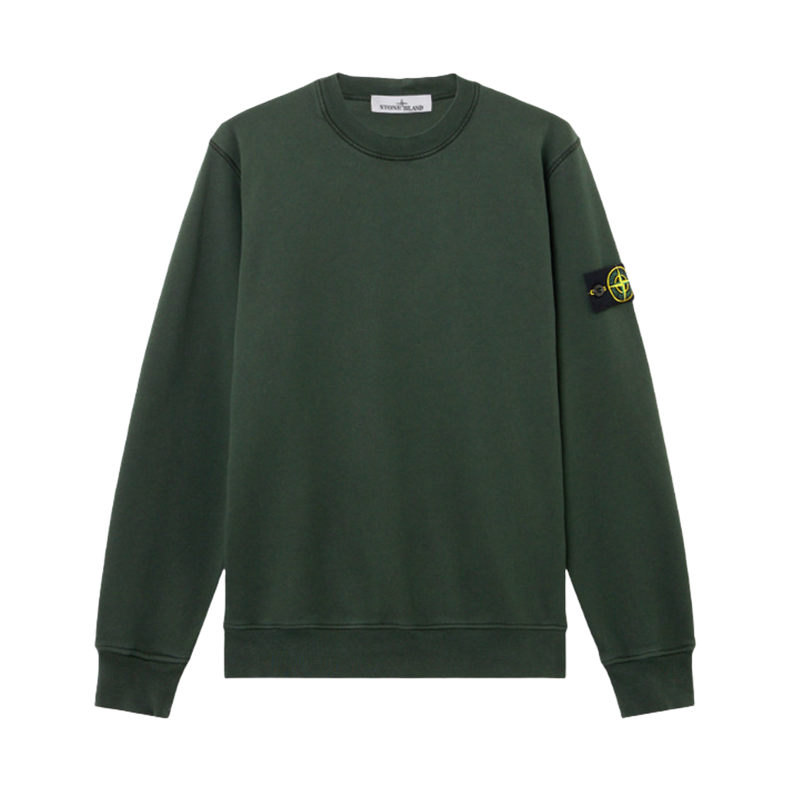 스톤 아일랜드 6100060 오가닉 코튼 플리스 레귤러 핏 크루넥 스웨트셔츠 엘라스티케이티드 커프스 주니퍼 - 25FW