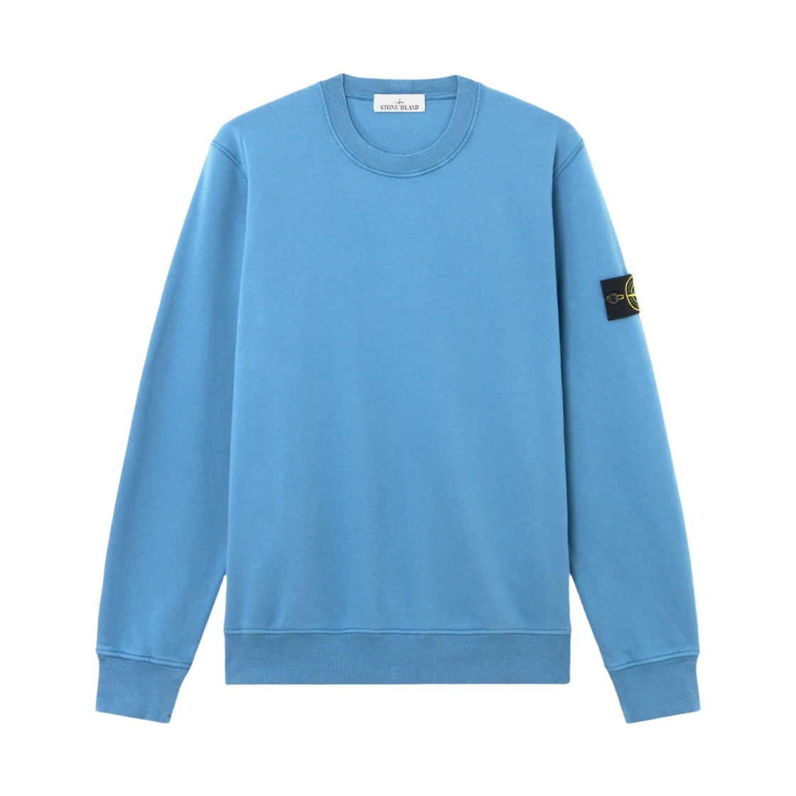 스톤 아일랜드 6100060 오가닉 코튼 플리스 레귤러 핏 크루넥 스웨트셔츠 엘라스티케이티드 커프스 스틸 블루 - 25FW